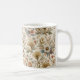 Elfenbeinfarbene, hellorange Blume mit aquamarinen und bunten Akzenten auf beige Unterlage schaffen eine köstliche Kaffee-Tasse.