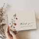 Boho Bloral Wedding Dankeschön Karte. Diese stilvolle und elegante Hochzeitskarte mit wunderschönen handbemalten Aquarellbädern, die als hübsches Bouquet für den Frühling, den Sommer oder für Hochzeiten im Herbst eingerichtet sind. Finden Sie passende Artikel in der Boho Wildblume Wedding Collection.