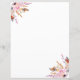 Feuille papier correspondant, insérer pour nos classeurs à 3 anneaux. Un arrière - plan blanc chic aux fleurs roses, roses, sprigs et plumes brunes et dorées. Boho d'été, style bohème.
