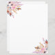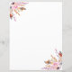 Passendes Papierblatt, für unsere 3-Ringbinder einlegen. Ein schick weißer Hintergrund mit rosa Blumen, Rose, Sprigs und braunen, goldenen Federn. Sommerboho, böhmischer Stil.