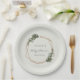 Boho geschlechtsneutrale Baby-Duschpapier-Teller mit Ihrem Namen, Veranstaltungstitel und Datum in einem modernen goldgeometrischen Rahmen umgeben von Grün und weißen Blume. Ein elegantes botanisches Design, das sich perfekt für eine böhmische Feier im Sommer eignet. Dieses geschlechtsneutrale Design ist großartig, egal ob Sie einen Jungen oder ein Mädchen haben, und diese maßgeschneiderten Teller fügen Ihrer Babydusche eine persönliche Touch hinzu. Rahmen mit freundlicher Genehmigung von:<a href="http://www.freepik.com">von Freepik</a>