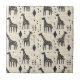 Reizvolle bohemian Safari-Muster-Keramikfliese mit stilisierten Giraffen mit spielerischen Ockerflecken, gepaart mit tribalen geometrischen Formen in Holzkohle auf einem texturierten cremefarbenen Hintergrund. Ein warmes, handwerkliches Design, ideal für Tierliebhaber, Boho-Stil-Fans und alle, die sich von erdigen, abenteuerlustigen Ästhetiken angezogen fühlen.