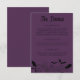 Bewundern Sie den Zauber mit dieser gotischen Hochzeitszauberkarte, die perfekt für eine Halloween-Hochzeit geeignet ist. Dieses moderne, elegante Design verbindet eine boho-dunkle Ästhetik mit einer launenhaften, spoky Atmosphäre, die das Wesen einer Oktoberfeier abbildet. Die lila-schwarze Farbpalette ist mit Fledermausmotiven und Spinnennetzmotiven geschmückt und mit zarten Blumenmotiven geschmückt. Set Sie den Ton für Ihren besonderen Tag mit einer einzigartigen Mischung aus gespenstischer Schönheit und zeitloser Eleganz.