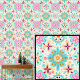 Boho Green Aqua Pink Blume Abstrakt Tapete