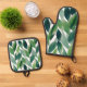 Boho Green Blätter Wasserfarbe Handgemalt Ofenhandschuh & Topflappen-Set