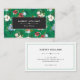 Hübsche florale Visitenkarte mit einem Jadegrün-Blumenmuster mit Blume, Grünpflanzen und Beeren in Korallenrot, Weiß und Blau. Fügen Sie Ihren Namen und Titel zum dunklen Etikett hinzu, und Ihre Kontaktdaten auf der anderen Seite.