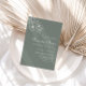 Dieses bohenhafte grüne Ziel Nestra boda Einladung ist perfekt für eine Winterhochzeit. Das Design umfasst Apfelblüten und Blume in Aquarellfarben in grünem Hintergrund.