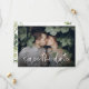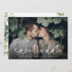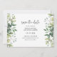 Moderne Hochzeit Sichern Sie die Date-Karten mit einem zweiseitigen Design mit Ihren Fotos und Text. Fügen Sie vorne Ihr volles Foto mit einem minimalistischen Texteüberlagerungsskript und Schriftart mit Handschrift hinzu. Die Rückseite bietet Platz für alle weiteren Hochzeitsdetails, umgeben von einem hübschen botanischen Rahmen mit bohfarbenen Blätter und Ästen im Aquarell. Verwenden Sie die Designtools, um Schriftart und Farben zu bearbeiten oder um mehr Fotos hinzuzufügen, um eine einzigartige Ankündigung Datum freihalten für Ihre Hochzeit zu entwerfen.