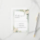 Die bohemianische RSVP-Karte zeichnet sich durch grünes Blattwerk und Eukalyptus mit blühenden weißen Rosen und extravaganter Kalligraphie aus.