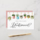 Junggesellinnenabschiede? Frag Familie und Freunden, mit dieser individuell gestaltbaren Bräunungskarte bei Deiner Hochzeitsfeier dabei zu sein. Personalisiert, dieses Boho werden Sie meine Bridesmaid-Karte, indem Sie Ihre eigenen Texte. Ideal für Hochzeiten im Sommer und Frühling.