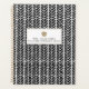 Ein Lehrer-Planer mit einem Boho inspirierte Schwarz-Weiß-Herringbone-Design auf der Vorder- und Rückseite. Vorderseite zeigt benutzerdefinierten Text unter Illustration eines bräunlichen Apfels.