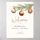 Minimalistisches Brautparty-Begrüßungsschild mit Aquarellkiefer-Zweig mit Weihnachtsbälle dekoriert.