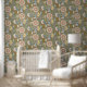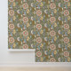 Boho indische Blüte mit olivgrünem Hintergrund Tapete