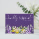 Carte RSVP rustique et boho avec calligraphie de style à grande main en blanc sur un arrière - plan violet. Avec également de magnifiques citrons et lavande peints en aquarelle. OEuvre originale du studio créée pour votre journée spéciale. Texte entièrement modifiable pour que vous puissiez facilement supprimer ou modifier/ajouter des mots qui correspondent à vos plans mariages.