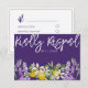 Rustikale und boho RSVP-Karte mit großer handgeschriebener Kalligraphie in Weiß auf einem lila Hintergrund. Auch mit atemberaubenden Zitronen und Lavendel in Aquarell bemalt. Originelle Kunstwerke aus dem Studio für Ihren besonderen Tag. Vollständig bearbeitbarer Text, damit Sie Ihre Hochzeitspläne ganz einfach löschen oder ändern/hinzufügen können.