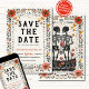 Boho Letterpress Skeleton Tarot Save-the-Date-Einladung. Entdecken Sie die charmante Mischung unserer Skeleton- und Tarot-Themen mit "Die Liebenden". Unser Skeleton-Motiv, ausgewählt für seinen romantischen Charme, verkörpert die zeitlose Reise von Seelenverwandten, die sich in einer ewigen Verbindung vereinen. Dieses Design transzendiert die physische Welt und symbolisiert eine Liebe, die bis in die Ewigkeit reicht. Ergänzt durch die Mystik des Tarot, bietet unsere Einladung eine spielerische, farbenfrohe Ästhetik, ideal für Liebhaber ewiger Romantik und gotischer Hochzeiten. Ein farbenfroher Blumenrahmen im Letterpress-Stil macht die Einladung noch spielerischer. Die Monogramme auf beiden Seiten erhöhen die Eleganz der Einladung und verleihen diesem zauberhaften Design einen stilvollen Touch. Der Text ist vollständig editierbar.