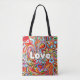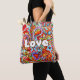 Bohemische inspirierte Tasche mit handgemalten, schwirbelnden Pfeifen, Herzen und Blumen. Ein kühn Vintages inspiriertes Design mit einer universellen Botschaft. Was die Welt jetzt braucht..