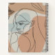 Boho Linie Künstlerin mit Blätter und blauen und orangefarbenen Formen.