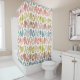 Dieser Duschvorhang hat ein Boho Design von spitzen Ovalen in Boho Schattierungen pf Rosa, Blau, Gold und Braun.