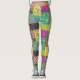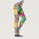 Es ist wie ein Patchwork-Quilt für Ihre Beine. Diese gemusterten Leggings illustrieren mutig gefärbte Blumenmuster in einem boho maximalistischen Stil in den Farbtönen Gelb, Orange, Magenta, Türkis, Blau, aquamarin, Kalkgrün und lila.