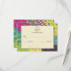 Erstellen Sie eine koordinierende UAWG oder eine Antwortkarte für Ihren besonderen Tag. Diese Karten können je nach Datum mit Ihrer Antwort angepasst werden und zeigen eine Abbildung im Stil eines farbigen Patchwork-Steppdecks mit einem cremefarbenen Textfeld, das mit Details zum Nähen von Imitaten versehen ist.