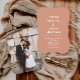 Diese personalisierte Einladung ist für den Anzug jedes Hochzeitsthemas, von einer gemütlichen Strandfeier bis hin zu einer schicken Spätsommer- oder Herbstfeier, vollkommen anpassbar. Mit einer Palette von Creme, Pfirsich, Korallen, Orange, Rost, Kupfer und Terrakotta, zeichnet sich dieses Design durch die Essenz eines Rosey-Sonnenuntergangs oder eines zitrusförmigen Events aus. Es ist ideal für diejenigen, die während der warmen und festlichen Monate Juni, Juli oder August ihre Hochzeit planen und verkörpert den Geist der boho disco Hochzeiten.