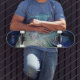*~* Boho Midnight Blue Sky Cosmic Pastor Feather Skateboard