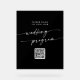 Ce symbole acrylique de programme de mariage noir de code QR moderne boho est parfait pour un mariage minimaliste. Le design bohème moderne présente une calligraphie rustique simple avec un style unique mais classique. Parfait pour toute saison : printemps, été, automne ou hiver. Entrez votre adresse Web dans la section de code QR du modèle et le code QR sera automatiquement mis à jour et lié à votre site.