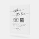 Ce boho acrylique clair moderne capture le signe mariage d'amour est parfait pour un mariage minimaliste. Le design bohème moderne présente une calligraphie rustique simple avec un style unique mais classique. Parfait pour toute saison : printemps, été, automne ou hiver. Entrez votre adresse Web dans la section de code QR du modèle et le code QR sera automatiquement mis à jour et lié à votre site.