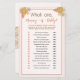 Dieses Retro Mommy oder Daddy Baby Shower Guessing Game ist immer ein Hit. Dieses Design eignet sich perfekt für ein geschlechtsneutrales Thema mit bohischer Ästhetik mit modernen Blumenmustern aus dem 20. Jahrhundert und groovy Typografie. Dieses "Hallo Baby" Duschthema ist lustig und trendig mit einem Hauch von Eleganz. Retrofarben, boho-Farben und modern ein Spin! Teil der Gender Neutral Retro Boho Floral Baby Shower Kollektion. Machen Sie diese einzigartigen Babyduschen-Einladungen, die Dekoration des Party und das Geschirr zu sich selbst, indem Sie auf "Personalisieren" klicken.