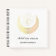 Ein elegantes Notizbuch mit einer holografischen Illustration eines Imitats aus Goldfolie, der einen dritten Blick über den Halbmond mit Blätter auf einem zauberhaften, weißen Hintergrund verziert. Personalisieren Sie den Text mit zwei Zeilen benutzerdefiniertem Text unten. Koordination mit der dritten Eye Moon Business Collection für Yoga-, Reiki-, Wellness-, Tages-Wellness-Center- oder Spirituosencoach,