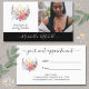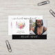 Esoteric Boho Moon Crystals Feathers Blume Business Termin Card in mit Fotovorlage mit weißem Hintergrund. Wasserfarbenes böhmisches Design mit Halbmond, Rose Quarz und Zitruskristall Cluster Punkte, rosa Rosen, Grün und weiße Federn. Ideal für Ihr metaphysisches, esoterisches, Wellness-Center, Therapeut, Energiehelfer , Klinik und spirituelles Geschäft. Text bereit für Ihre Informationen. Ersetzen Sie Foto durch Ihr eigenes.
