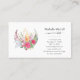 Boho Moon Crystals Feathers Blume Kristallcluster, Pink Watercolor Blume, weiße Federn, Blätter mit Aquarellfarben Crescent Moon Design Business Cards. Text bereit für Ihre Informationen.