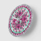 Boho Mosaic Tile Pink Berry - dieses saftige, rosa Berry Stil Wall Clock Design ist von portugiesischen Fliesenmustern inspiriert und macht Mandala Liebhabern ein nettes Geschenk.