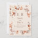 Annoncez votre jour spécial avec style avec notre invitation "Save the Date" de mariage à monogramme en mousse florale Boho. Ce design élégant présente un fond en poudre rose pâle doux inspiré de "Mocca Mousse", orné de délicates touches de rose doré et de fleurs crémeuses. En haut, un monogramme personnalisé dans une typographie chic et boho ajoute une touche moderne et sophistiquée.