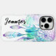 Native American inspiriert Dreamcatcher iPhone 16 Phone Case. Dieses Handy Case mit seinem aufwändigen Dreamcatcher-Design verbindet traditionelle Kunst und modernen Stil wunderbar. Personalisieren Sie dieses iPhone 16 Handy Fall, indem Sie Ihren eigenen Namen hinzufügen.