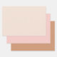 Trendy Bohemische Farben für Verpackungsgeschenke. Drei Blätter mit verschiedenen Farben. Eine ist in Pastellfarben, die andere in sanftem Rosa und die dritte in Lebkuchen und Brauntönen. Boho neutrale Pastelltöne verschleiern Papiertücher.