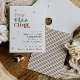 Une amusante invitation à la fête du Nouvel An qui présente un design typographique dans des tons de sauge muet, de terre cuite et de beige et une police rétro. Cette élégante invitation a un côté réversible rayé, il est facile à modifier et est parfait pour un fête de vacances. Associez-vous à tout ce qui provient de la collection STELLA pour un look cohésif.