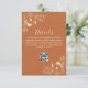 Mit unserer eleganten böhmischen Terrakotta Bronze-Orange Wedding Details Enclosure Card stärken Sie die Eleganz Ihres Hochzeitsensemble. Diese Karte mit zarten goldgelben Blumenspitzen und grüner Rückseite besticht durch moderne Eleganz und zeitlosen Charme. Das einfache Kalligraphieskript zeigt anmutig die wesentlichen Details und sorgt dafür, dass Ihre Gäste mit Stil und Grazie informiert werden. Fügen Sie Ihren QR-Code für UAWG und weitere Informationen hinzu. Vom Veranstaltungsort bis zu den Unterkunftsdetails, fügt diese Einschließungskarte jedem Aspekt Ihres besonderen Tages eine Touch der Verfeinerung hinzu und schafft so die Bühne für ein unvergessliches Fest.