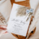 Moderne Baby Dusche Einladungskarte mit Aquarellbild von Pampasgras botanisch mit blauen Blumen. Ideal für eine Jungendusche im Sommer.
