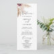 Dieses Hochzeitsprogramm für Boho Pampas ist perfekt für eine Hochzeit im Sommer. Das Blumenmuster in Aquarellfarben ist mit böhmischen bordeauxroten und rot-rosa Blume mit Spitzen aus neutralem Pampasgras und goldgetrockneten Palmen-Blätter gestaltet. Geben Sie den Namen der Braut und des Bräutigams, das Datum und den Ort der Hochzeit, Dankeschön-Nachricht, Dienstordnung, Brautparty und ein optionales "in Loving Memorial" ein.