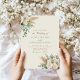 Invitation vos proches à votre journée spéciale avec cet élégant faire-part de mariage boho, avec de l'herbe rêvée de pampas, de la verdure fraîche d'eucalyptus et des roses blanches intemporelles. La palette douce de vert sauge et de beige apporte une touche chaleureuse et romantique, parfaite pour les mariages de jardin, grange, rustique ou extérieur. Personnalisez facilement tout le texte de votre cérémonie et associez-vous à la coordination des cartes RSVP, des menus et de la signalisation de notre collection Boho Pampas pour un look cohésif.