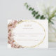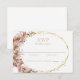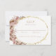 Cette carte de réponse RSVP à thème de mariage boho présente des aquarelles brillantes de l'herbe de pampas dans des teintes roses poussiéreuses et des sous-tons chocolat subtils. Roses crème douce accent parties scintillant or cadre ovale créant une présentation élégante pour vos invités. Conçu pour coordonner avec notre collection Boho Pampas Grass Mariage. Customisez en ajoutant la date de réponse désirée.