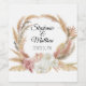 "Boho Pampas Palm Floral Wasserfarbe Rosa Wedding Wine Label." Eleganter handgemalter Boho Kranz mit Pampasgras, getrockneten Blätter der Fächerpalme, rosa Rosen und weißen Orchideen. Hergestellt von Audrey Jeanne Roberts, einem international renommierten lizenzierten Künstler und Designer. Urheberrecht.