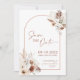Boho Save the Date mit modernem Gewölbedesign mit Papas, Terrakotta und Rost-Blume.
