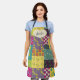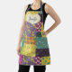 Diese hübsche Schürze ist bereit, mit einem Namen personalisiert zu sein. Diese Schürze hat ein illustriertes Design mit einem farbenfrohen, boho-artigen Flickwerk. Eine cremefarbene, herzenförmige Grafik mit Imitaten, die Akzente sticken, ist bereit, mit einem Namen in marineblauer Schrift oder kursiver Schrift personalisiert zu werden.