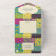 Eine Herzform-Grafik ist Set gegen ein maximalistisches Blumenmuster-Fliesen-Hintergrund auf diesem alles in einer Hochzeitseinladung mit abnehmbarer rsvp-Karte, die einen warmen, farbenfrohen Look hat. Diese Einladung ist einfach zu personalisieren mit allen Ihren Event-Details.
