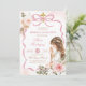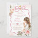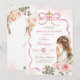 Boho Pink Bow Pampass Grass First Holy Communion Invitation, Girl Kneeling Primera Comunión Invitación, Spanish Holy Communion