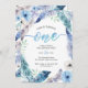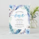 Des plumes et des fleurs d'aquarelle bleu et violet figurent sur cette magnifique invitation à la fête du premier anniversaire de la naissance du boho. Éléments correspondants également disponibles dans cette collection. © Mini Moi Prints