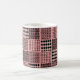 Diese Tasse hat ein Boho-Design von Quadraten mit Mustern in jedem in schwarz und rosa.